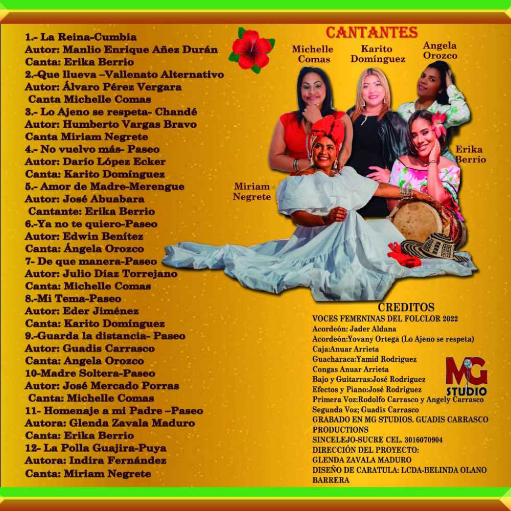 Para esta producción musical participaron siete destacadas voces femeninas, quienes dieron vida y sentimiento a cada obra seleccionada. Ellas fueron: Malbi Blanco Romero, Patricia Merlano, Bau Gutiérrez, Yisell La Voz Rosa, Naima Luz Cotes (cantautora), Nataliana Vargas y Linnett Acebey (cantautora). En conjunto, estas artistas aportaron su estilo y sensibilidad para engrandecer este proyecto musical del año 2025.