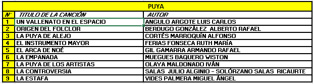 De un total de 238 canciones vallenatas inéditas inscritas (55 merengues, 140 paseos, 23 puyas y 20 sones, se seleccionaron 62 que se presentarán en su primera ronda a partir del viernes 26 de abril a las 9:00 de la mañana en la plaza Freddy Molina, tarima Octavio Daza, del corregimiento de Patillal, municipio de Valledupar.
