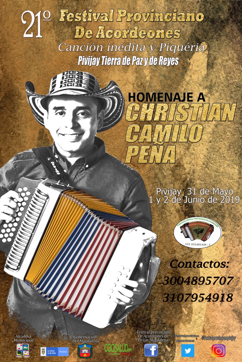 En homenaje al destacado acordeonero Cristian Camilo Peña Redondo se desarrollará la vigésimo primera (21) versión del Festival Provinciano de Acordeones, Canción Inédita y Piqueria, que este año se llevará a cabo el viernes 31 de mayo, sábado primero y domingo dos de junio, en la tarima ‘Abel Antonio Villa’ de la plaza de ‘Los Gallos’ de Pivijay (Magdalena), ‘Tierra de Paz y de Reyes’.