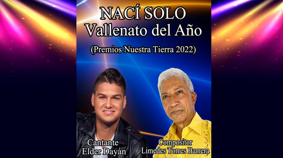 “Nací Solo” de la autoría del *compositor Limedes Torres Barrera* en la voz de *Elder Dayan* se convirtió en la canción Vallenato del Año en los #PremiosNuestraTierra2022, el artista recibe del público este importante reconocimiento a su gran interpretación y a lo exitosa que ha sido esta versión a nivel nacional, dando el resalte de una obra musical que se convirtió en un gran clásico vallenato del reconocido Compositor Limedes Torres Barrera poseedor de otras grandes obras que son grandes éxitos.