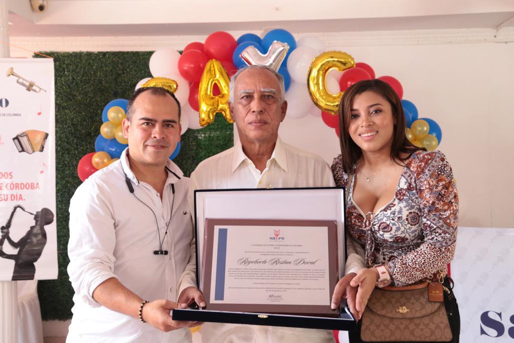 En el marco de la celebración del día del compositor colombiano (22 de Octubre) y que en Córdoba se realizó el jueves 10 de noviembre se le hizo un reconocimiento al maestro y excoordinador regional, Rigoberto Restán, por sus obras musicales y dedicación siendo un excelente trabajador por la defensa de los afiliados de Sayco Córdoba, quien a través de ardua lucha le dio el estatus como debe ser al rescate del talento cordobés. Dicho evento contó con la asistencia de todos los compositores afiliados a la Sociedad de Autores y Compositores de Córdoba, contando con la presencia de Rafael Cristancho, Coordinador Societario Sayco Nacional, quien a nombre y representación de la Junta Directiva encabezada por su Presidenta Rita Fernanda, Rafael Manjarrez y demás directivos como César Ahumada, Gerente de Sayco Nacional, Armando Romero director Societario Sayco Nacional, enviaron la exaltación y reconocimiento al maestro Rigoberto Restán Doval.