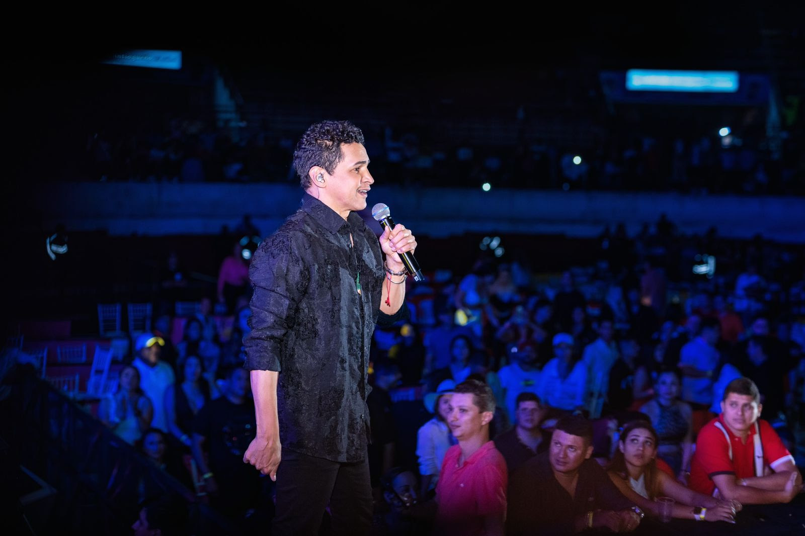 Celedón mostró todo su potencial musical durante una hora teniendo a cada momento el emotivo coro del público que colmó las graderías y palcos.