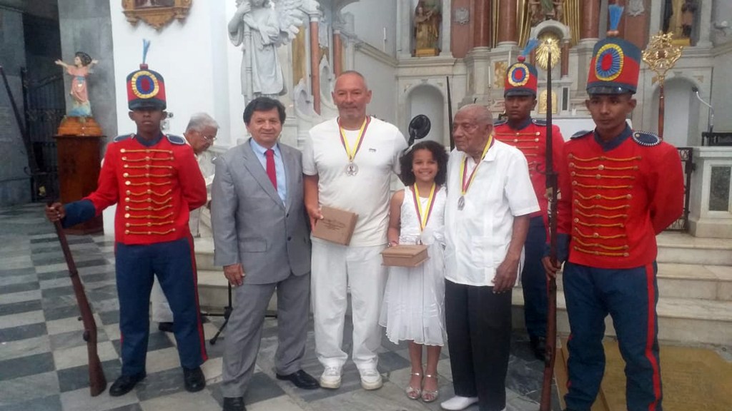 Tan honorable acto se realizó en la catedral de Santa Marta y estuvo a cargo del Dr. Jaime Márquez Contreras, miembro de la Fundación Periodistas Bolivarianos de América quien hizo la entrega de este reconocimiento por sus grandes aportes a nuestro folclor. el acto sobrio y patriótico contó con la presencia de los soldados colombianos vestidos a la época bolivariana. Realizado frente a la última sepultura que guardó los restos del líder Símón Bolívar.
