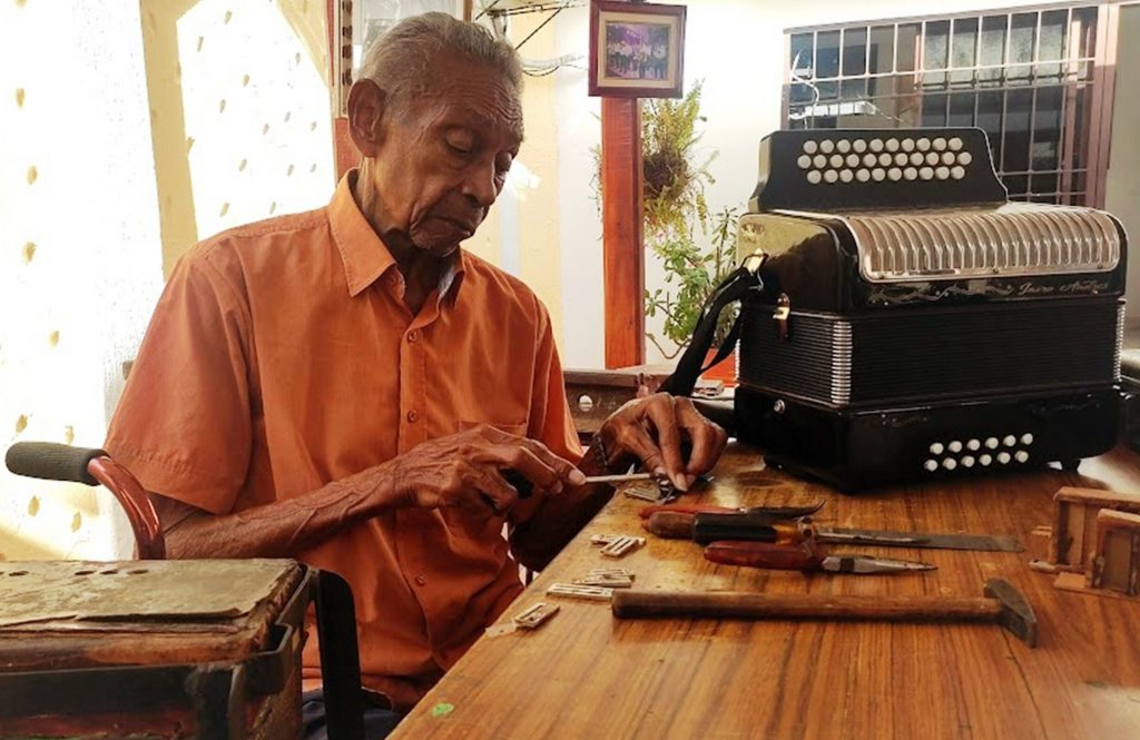 Ahora su hijo Ovidio Raúl, ‘Villito’, lo acompaña en la tarea de arreglar los acordeones, dando a conocer los elementos ocultos y descubriendo donde está el daño. Es interesante el trabajo de entrar al corazón de los acordeones lleno de aluminio, plástico y cartón.