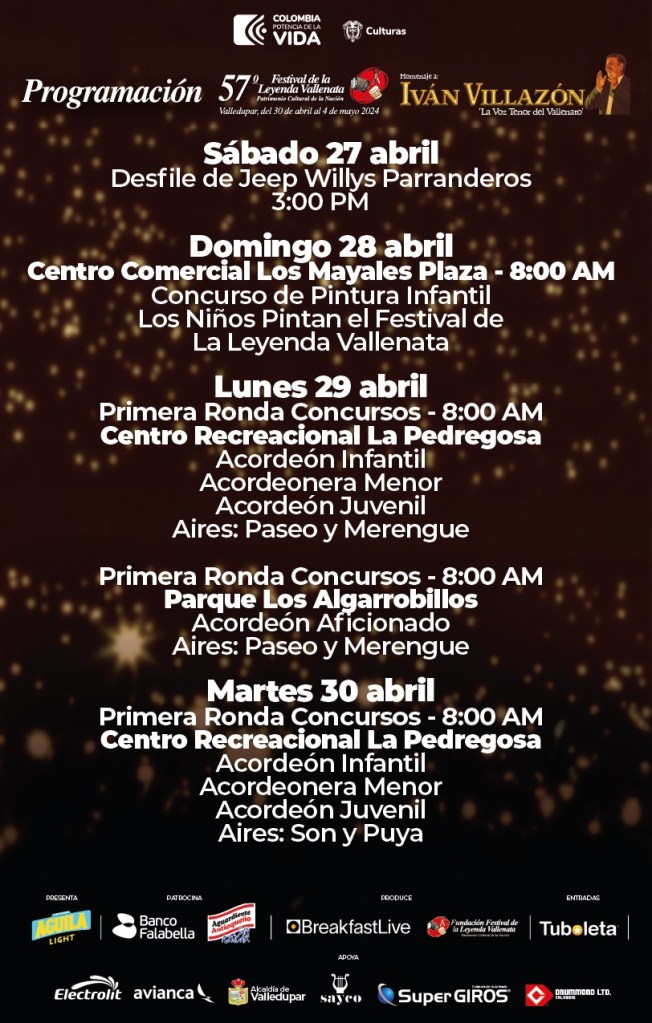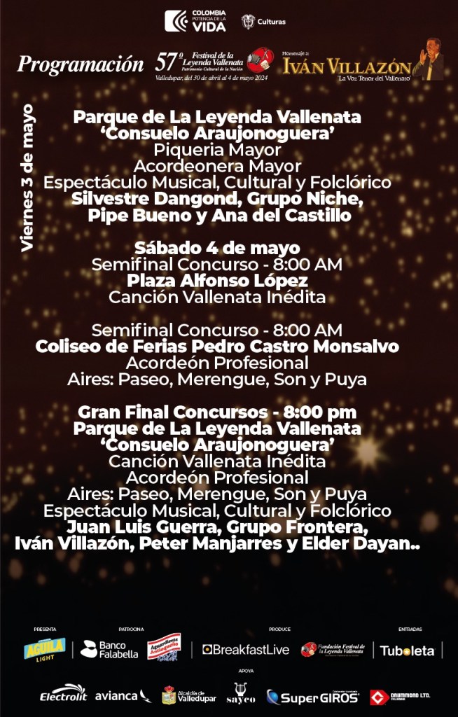 57°Festival de la Leyenda Vallenata en homenaje a Iván Villazón Aponte